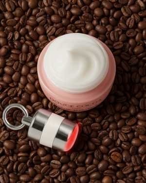 Découvrez notre soin contour des yeux infusé à la caféine, boosté par la technologie vibratoire et la lumière rouge innovante.